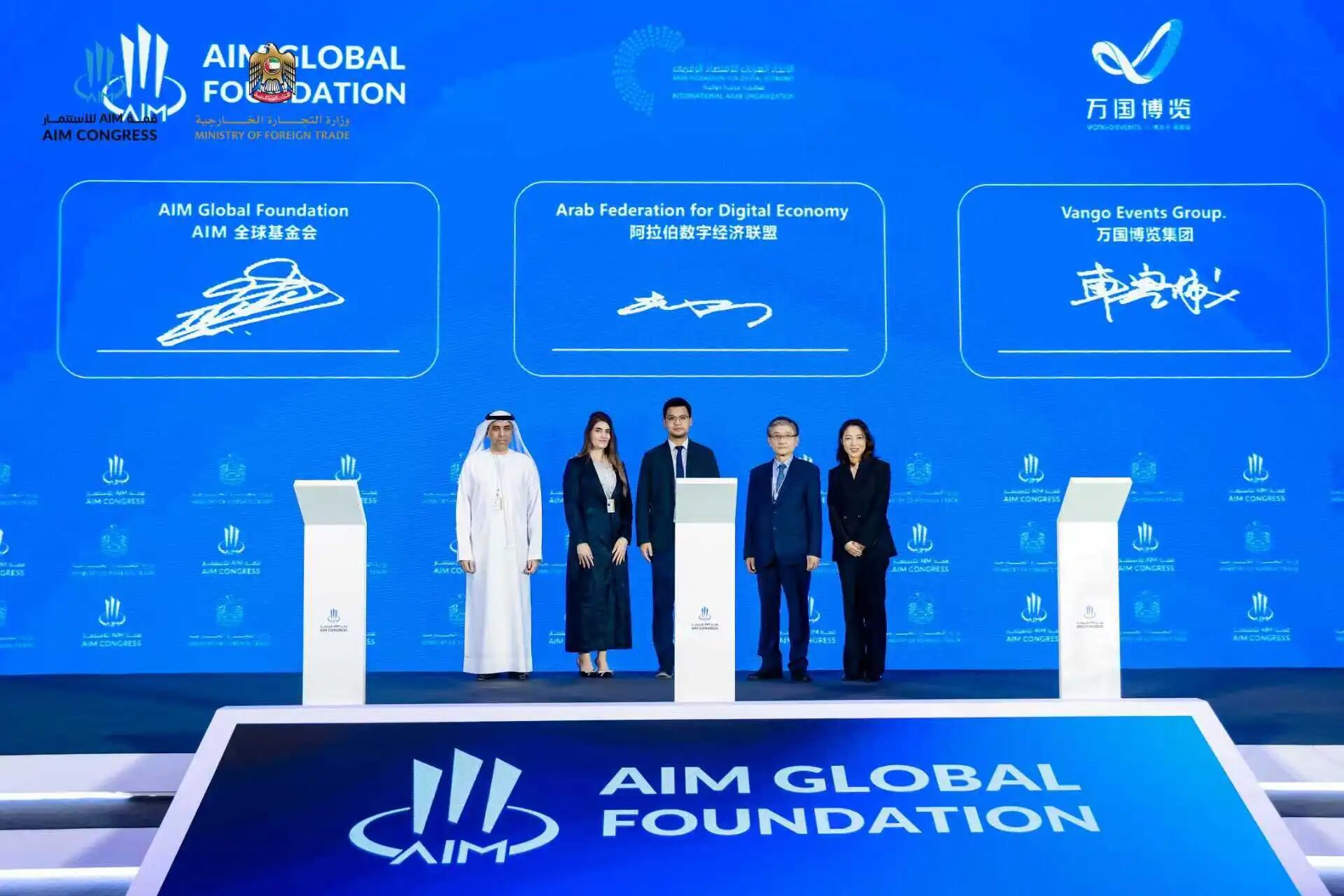 在第八届中国国际进口博览会期间,万国博览集团与阿拉伯数字经济联盟、AIM全球基金会举行战略合作签约仪式,核心目的是以会展为纽带深化中阿全方位合作,服务高水平对外开放与全球经贸高质量发展。三方旨在依托阿联酋国际投资峰会等高端平台,搭建中阿企业精准对接渠道,助力中国企业拓展中东及全球市场,同时吸引中东资本共享中国大市场机遇,实现双向互利共赢。